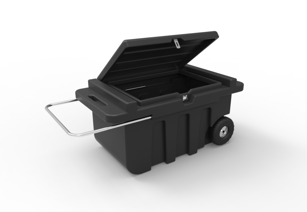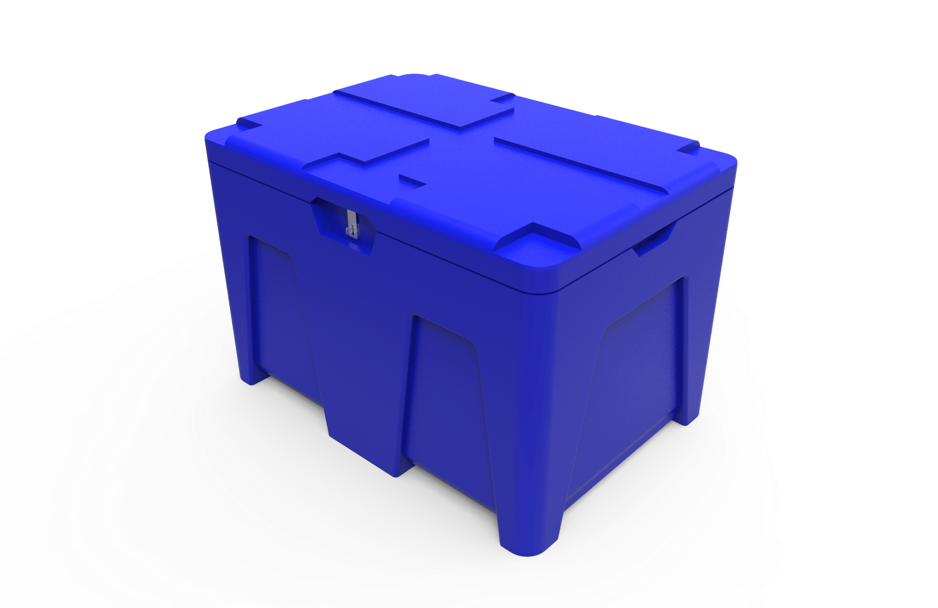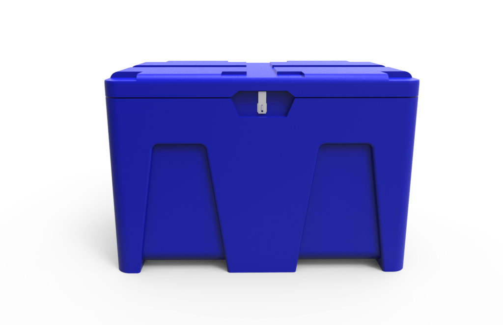 Contenedor de 95 litros para el almacenamiento seguro de activos en zonas industriales, con protección robusta y facilidad de transporte.