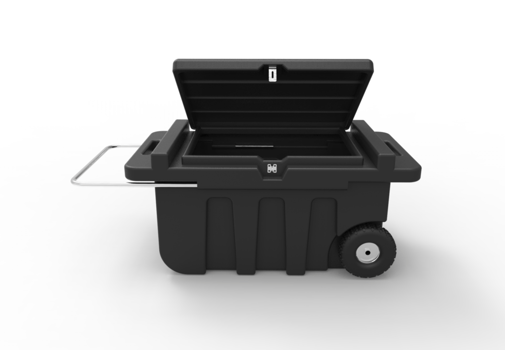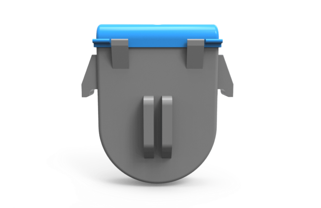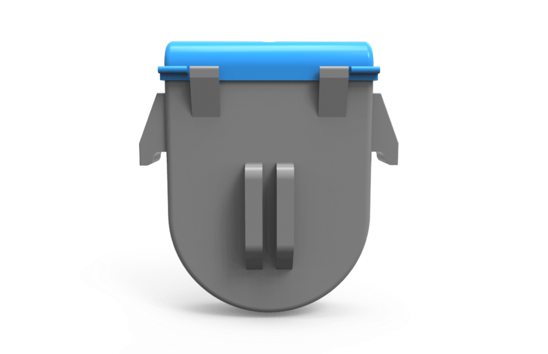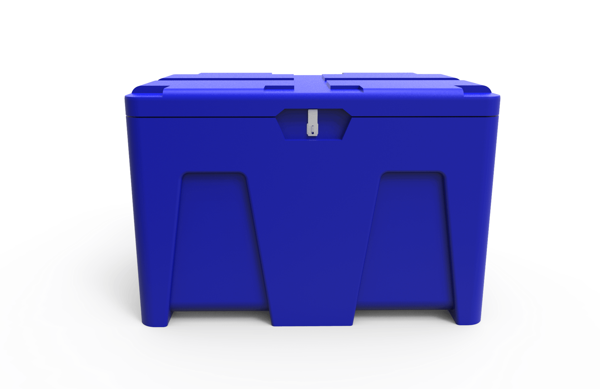 Contenedor de 95 litros para el almacenamiento seguro de activos en zonas industriales, con protección robusta y facilidad de transporte.