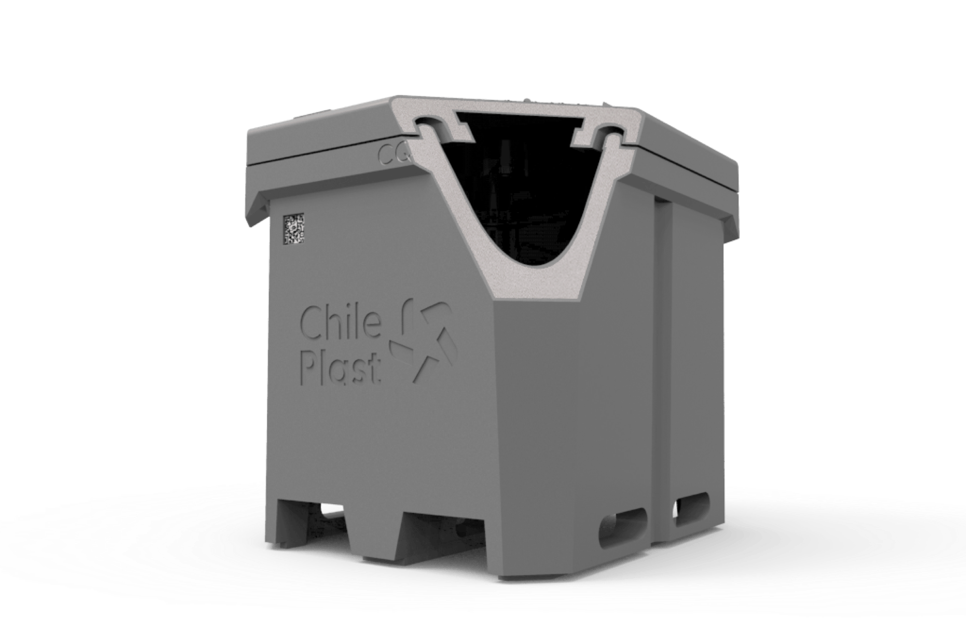 También con medidas de 1200 x 1100 x 160 mm, es apilable y compatible con procesos industriales, ofreciendo la misma resistencia y calidad sanitaria.